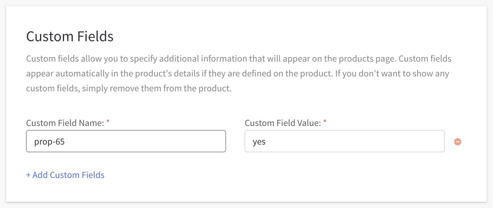 This page shows how our Prop 65 Wizard places the California Proposition 65 warning on an individual item page. This is controlled via custom field on the individual items that require Prop 65 notifications.